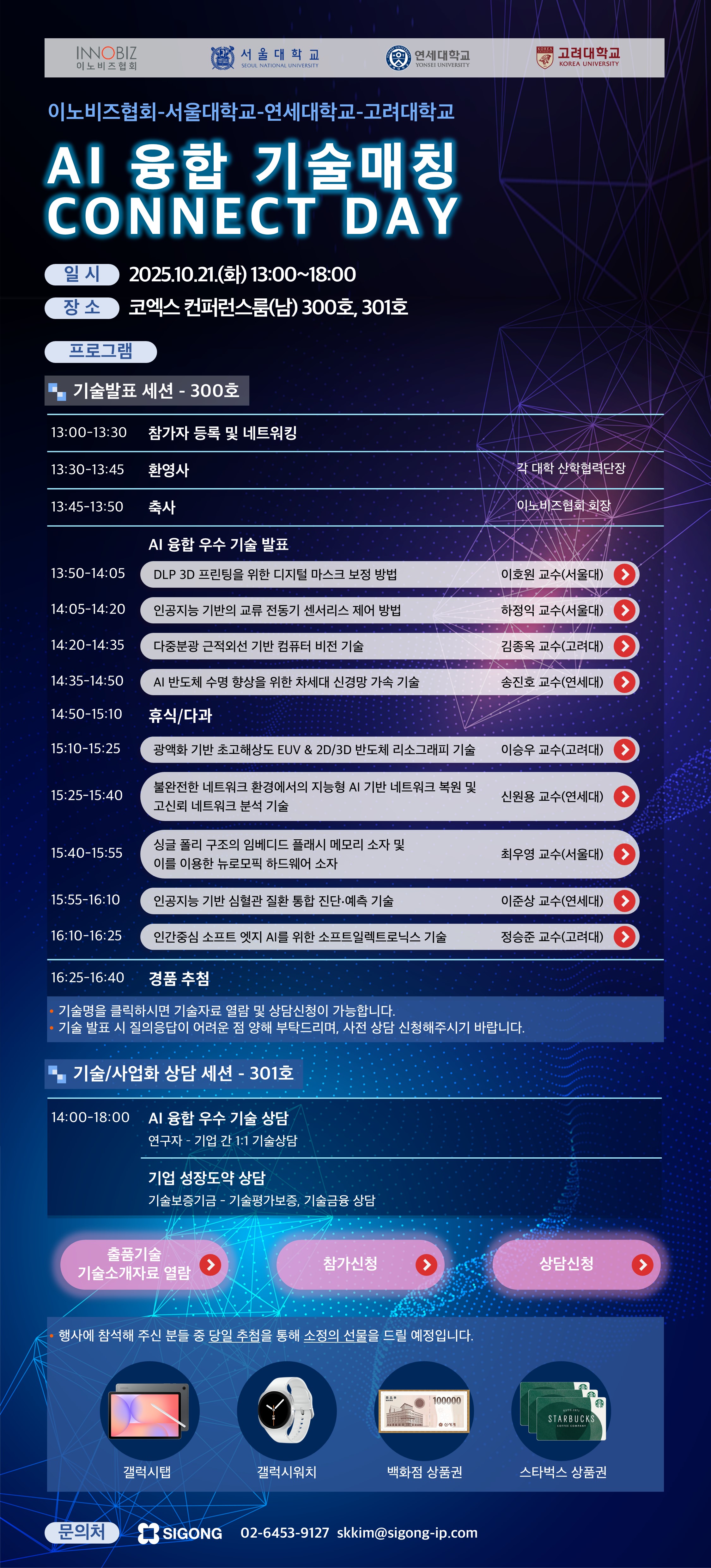 [서울대학교 외] 서울대-고려대-연세대 합동「AI 융합 기술매칭 CONNECT DAY」