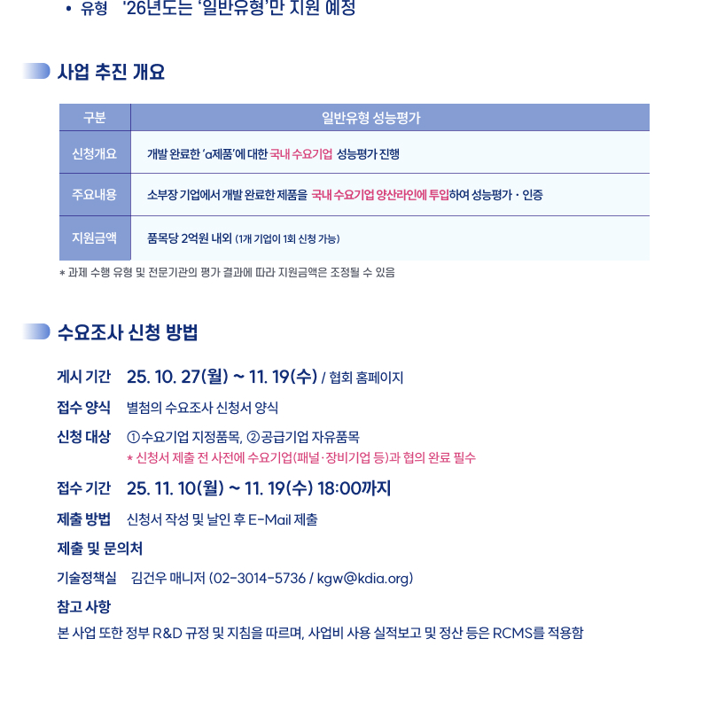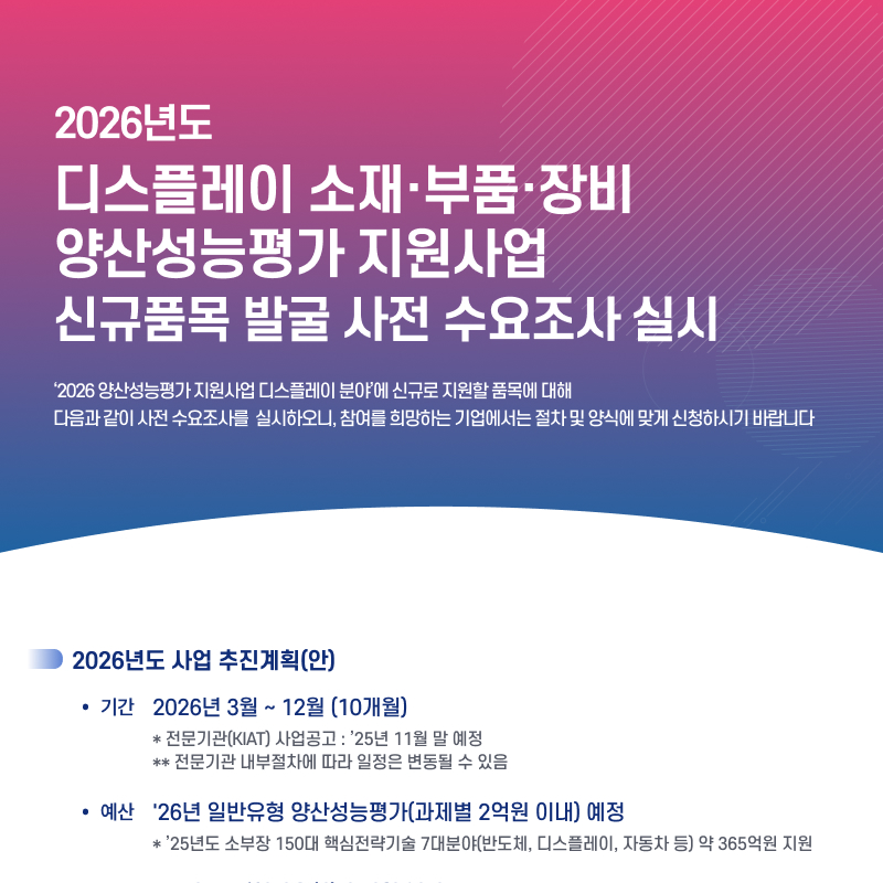 2026년도「디스플레이 소재·부품·장비 양산성능평가 지원사업」 신규품목 발굴 사전 수요조사 실시(~11.19)