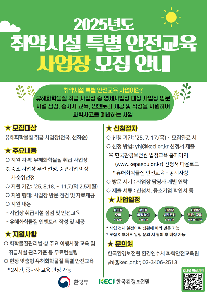 2. 신청대상 : 유해화학물질 취급 영세 사업장(165개소
