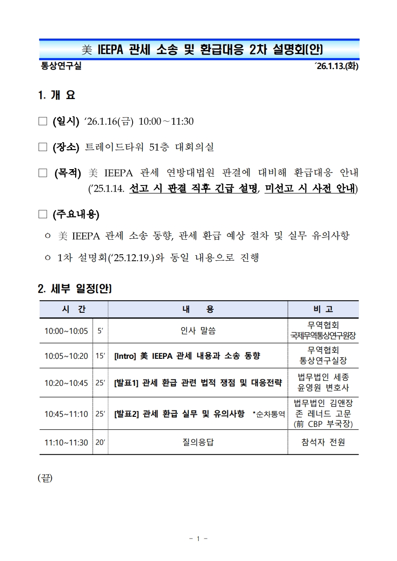 [산업부] 美 IEEPA 관세 소송 및 환급대응 2차 설명회