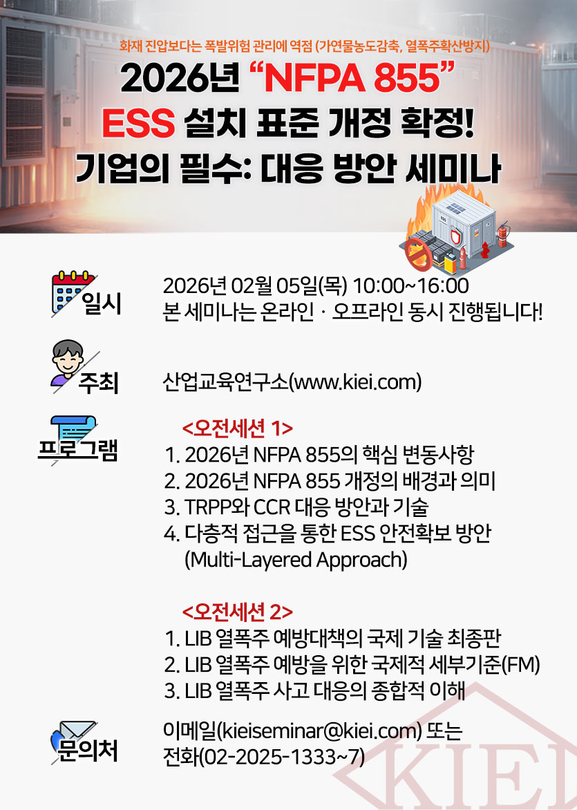 [산업교육연구소] NFPA 855 ESS 설치 표준 개정! 대응전략 세미나 개최 안내