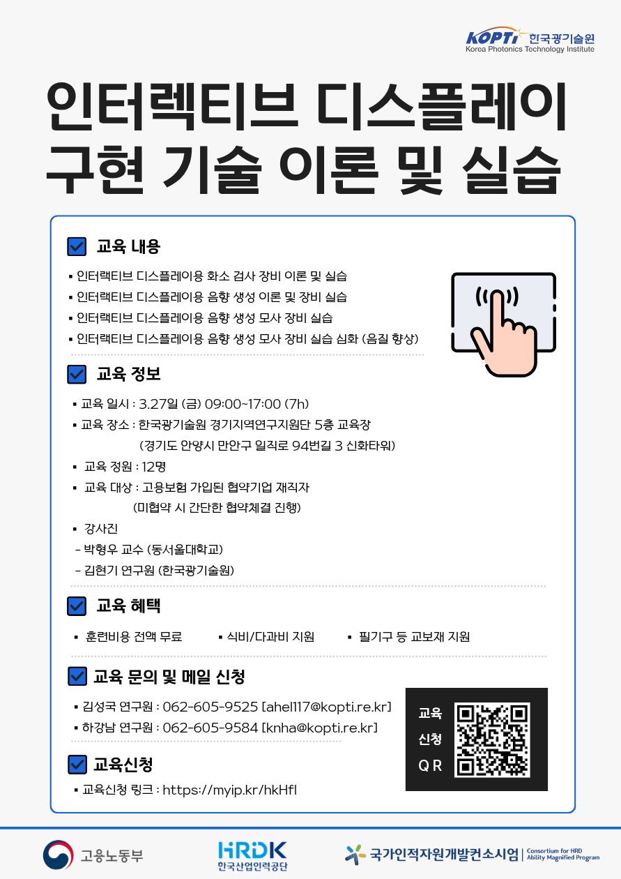 [한국광기술원] 인터렉티브 디스플레이 구현 기술 이론 및 실습 안내 (3.27(금))