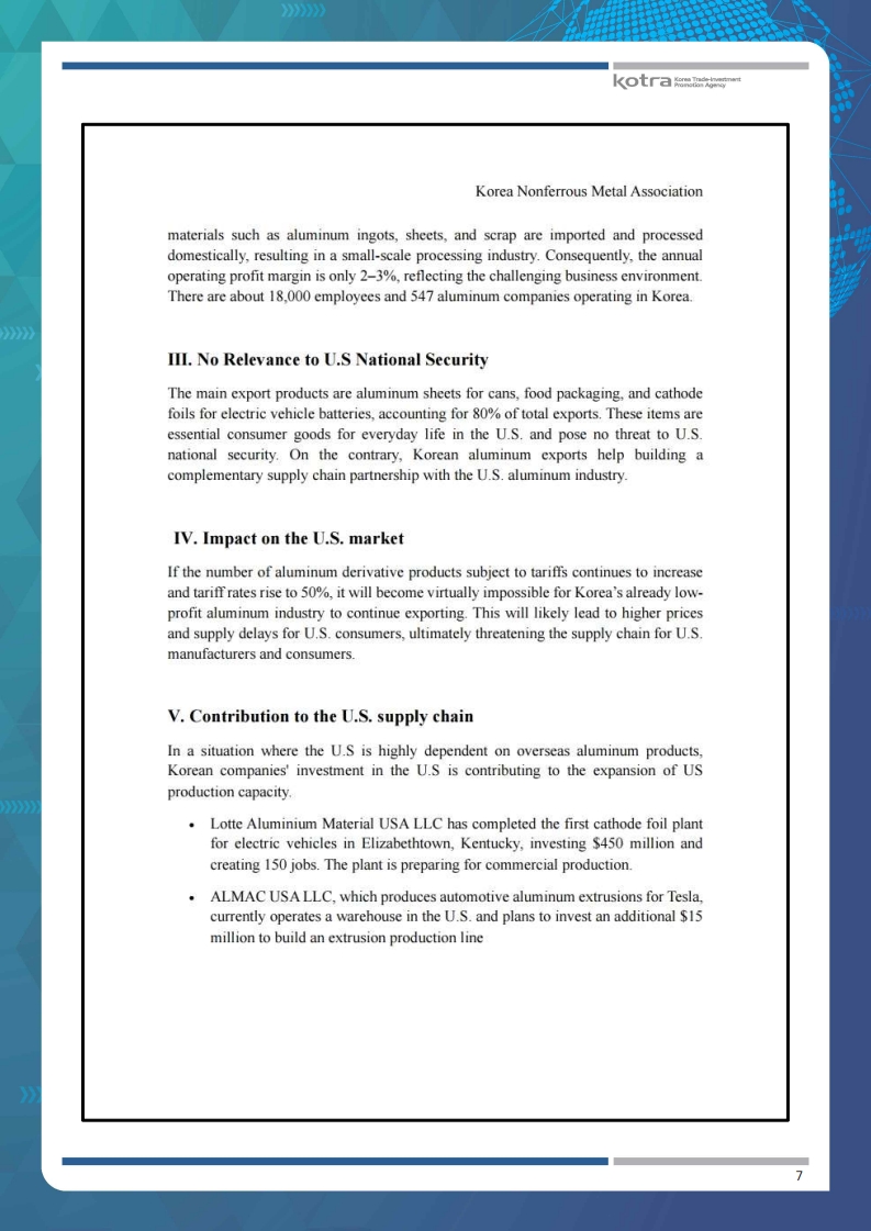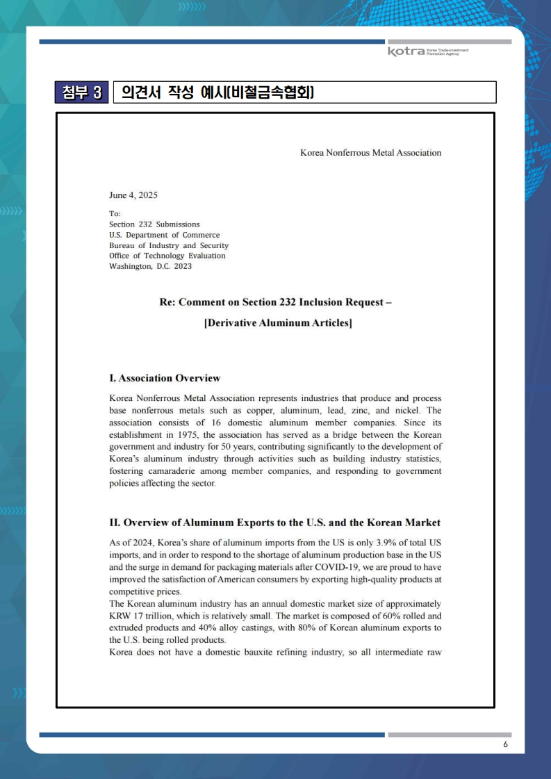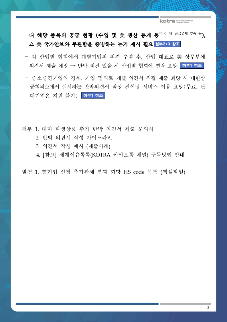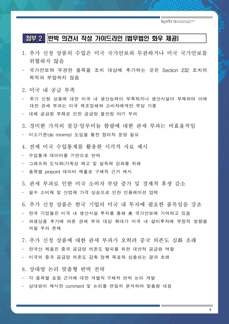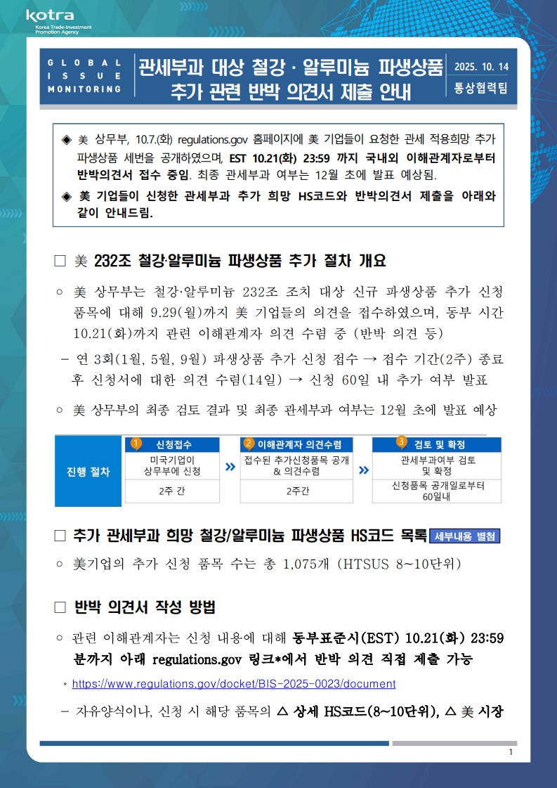 [KOTRA] 관세부과 대상 철강·알루미늄 파생상품 추가 관련 반박 의견서 제출 안내