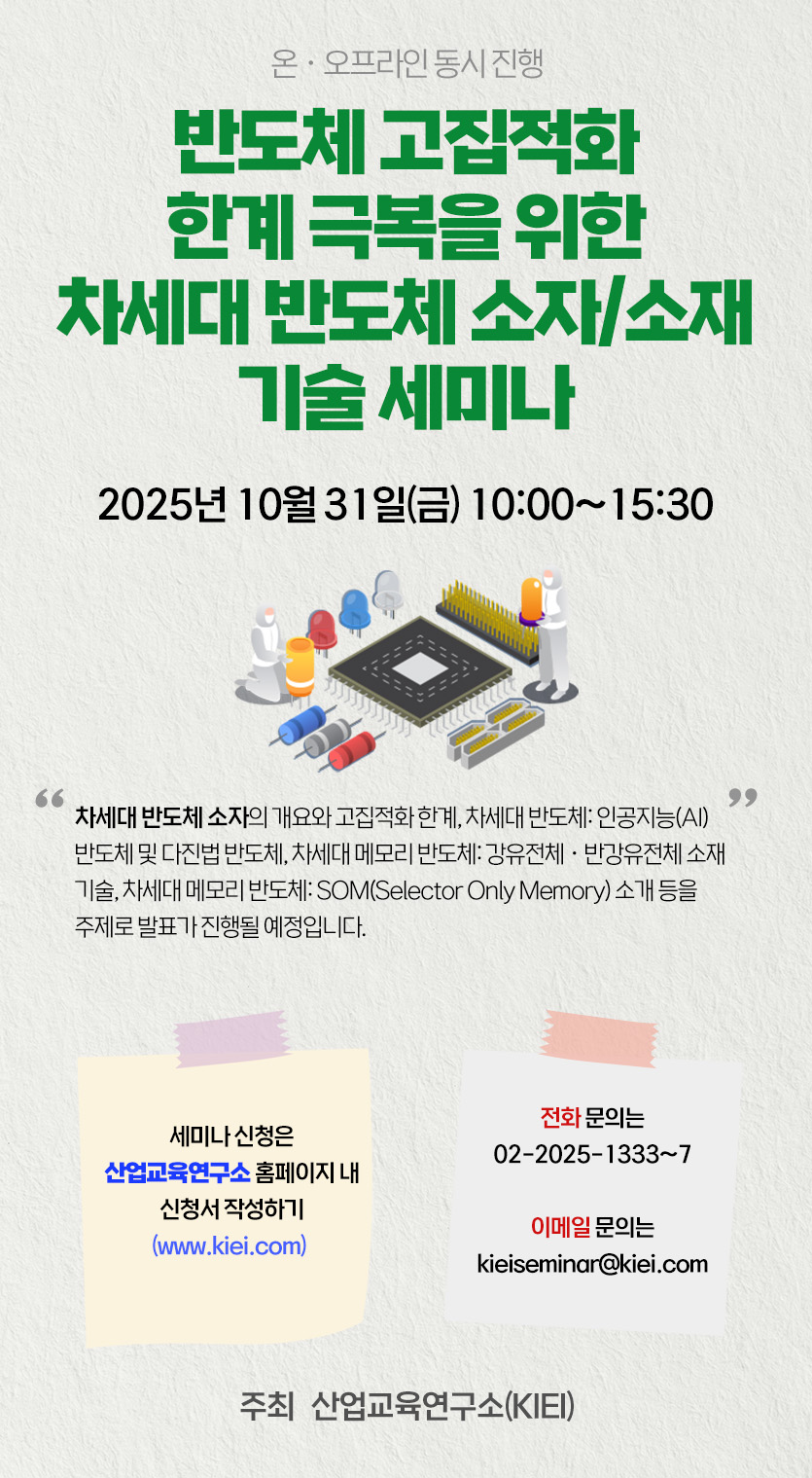 [산업교육연구소] 반도체 고집적화 한계 극복을 위한 차세대 반도체 소자/소재 기술 세미나 개최 안내
