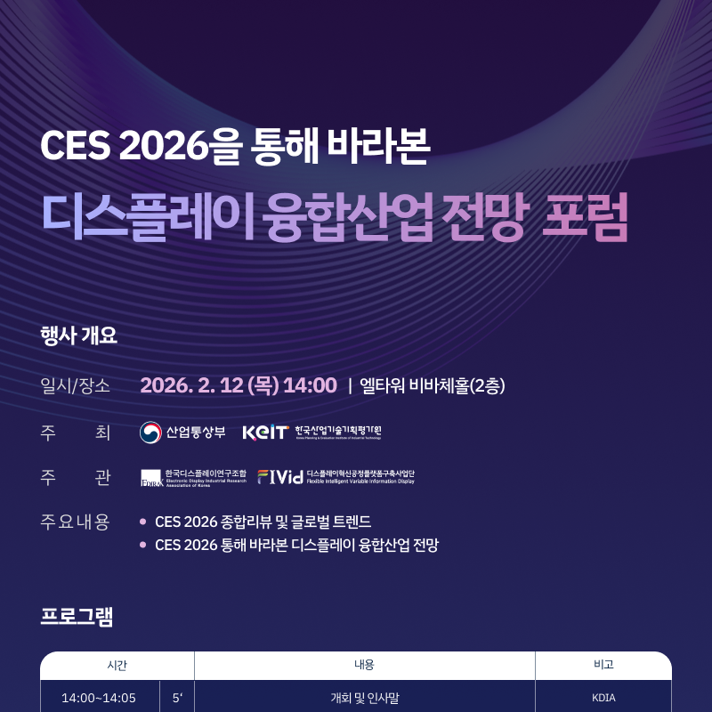 (선착순등록)CES 2026을 통해 바라본 디스플레이 융합산업 전망포럼 신청 안내(~2.9(월)18시)
