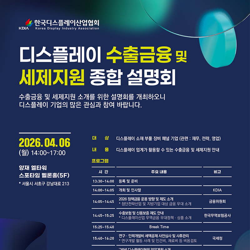 2026 디스플레이 수출금융 및 세제지원 설명회 개최 안내