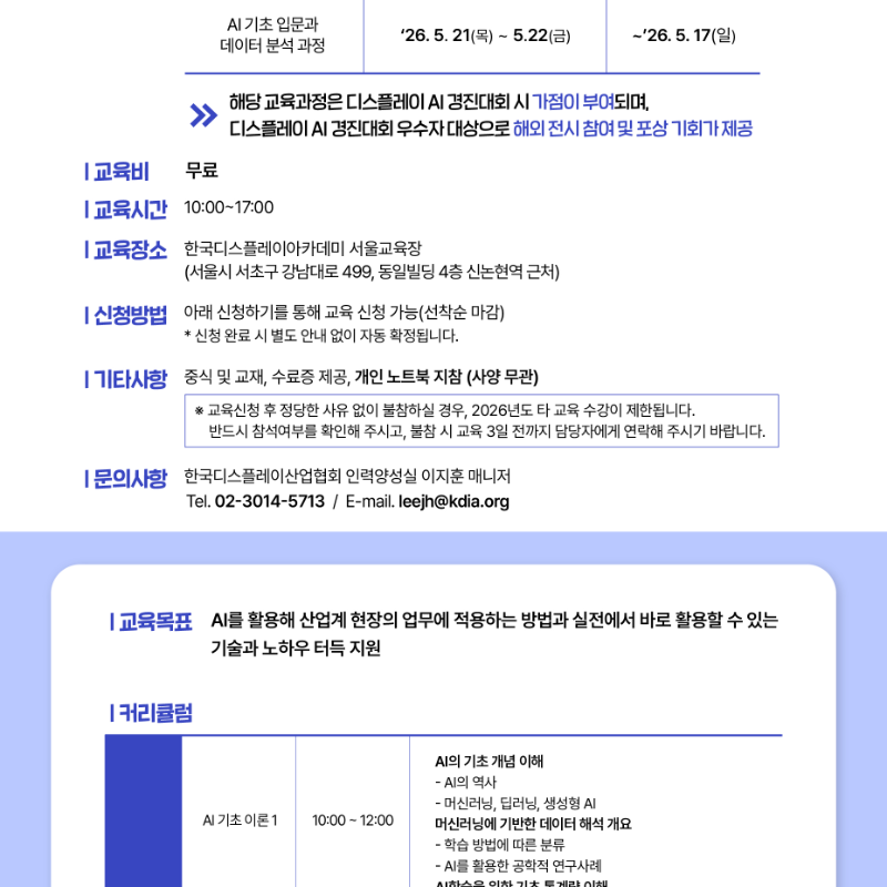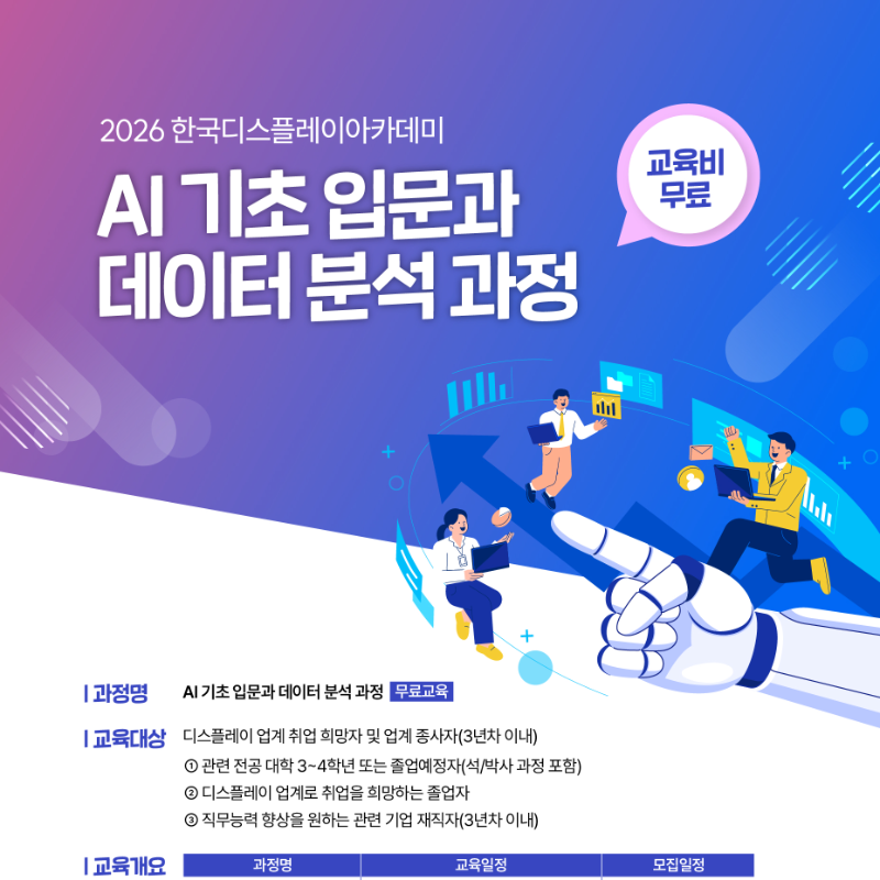 [디스플레이아카데미] AI 기초 입문과 데이터 분석과정 교육생 모집(재직자 및 예비취업자, 무료교육)